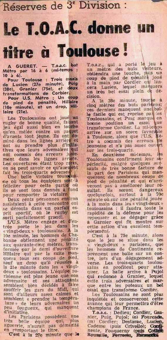 Serge LUCIEN Champion de France de Rugby 1977 ( Réserves 3e Division)