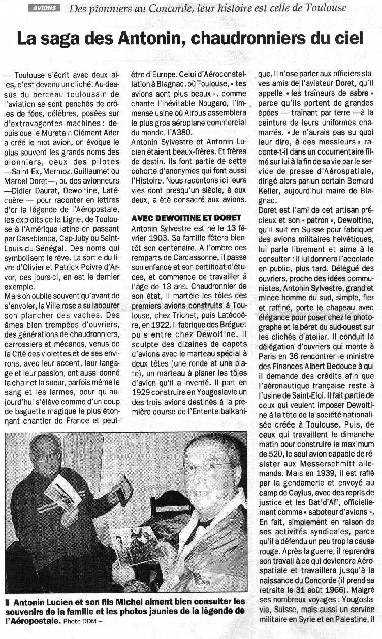Hommage du Journal "La Dépêche du Midi" à mon oncle A.SYLVESTRE